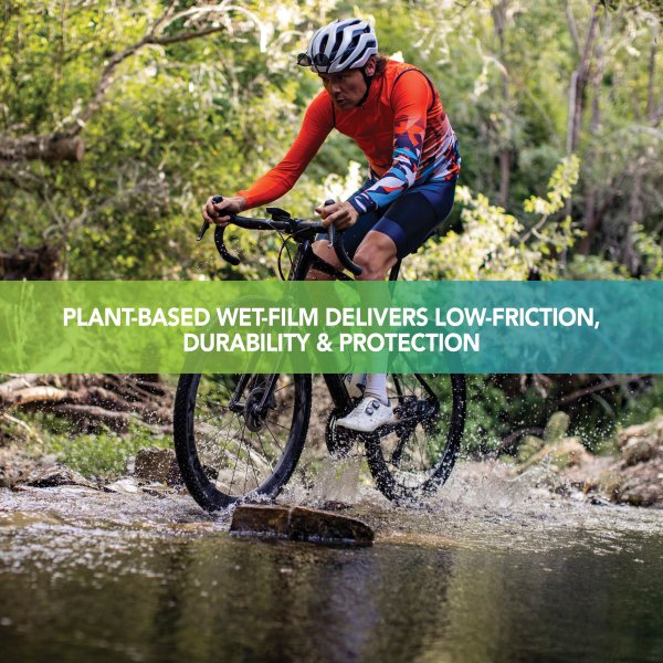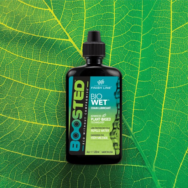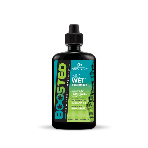 Eco without compromise - BOOSTED™ BioWet utilizes sustainably sourced, plant-based oils to deliver pro-level chain efficiency and protection. This low-friction, wet-film lubricant is fully water resistant and is engineered to withstand high-mileage and extreme pressures. It is suitable for all conditions and is ready to ride after application. BioWet meets the highest standards of ECO compliance and is readily biodegradable. This means over 60% will biodegrade within 28 days when in contact with the earth. It contains 0% petroleum, PFAS, dyes, VOCs, or flammable ingredients.