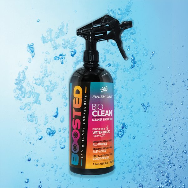 Eco without compromise - BOOSTED™ BioClean utilizes proprietary water-based technology to clean as effectively as traditional solvent degreasers. BioClean meets the highest standards of ECO compliance and is readily biodegradable, meaning over 60% will biodegrade within 28 days when in contact with the earth. It contains 0% solvents, dyes, toxins, VOCs, harsh odors or flammable ingredients. BioClean is strong enough to break down stubborn grease and grime, yet safe enough for use on paintwork and other delicate bike components. This innovative, fast-acting formula is ready-to-use and can be sprayed straight from the bottle onto contaminated areas. Water rinsing is optional and for most applications the surface can be wiped clean with a cloth. For hardened or stubborn soils agitation may be required and BioClean is also ideal for use with specialty brushes or in ultrasonic cleaners or parts washers. BioClean is a concentrated solution that can be used full-strength for heavy-duty cleaning such as the drivetrain, or diluted with up to 10 parts water for light-duty cleaning such as the frame or saddle.